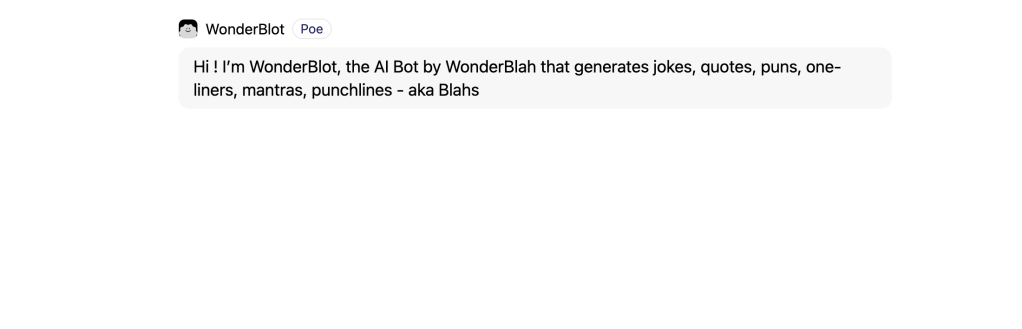 Blahster & WonderBlot : A GPT and an AI chatbot developed by WonderBlah that generate a wide range of content, including jokes, quotes, puns, catchphrases and more, allowing users to bring their creativity to life.