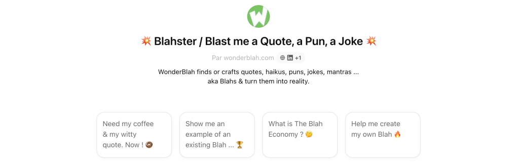 WonderBlah : The core platform where users can create, share and monetize their creative punchlines, known as « Blahs. »